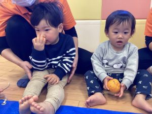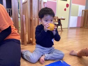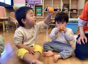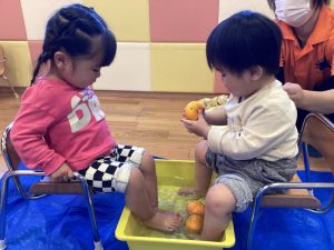みかんの柔らかい感触が気に入ったお友だちは、
