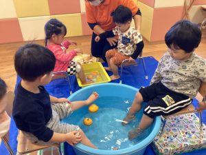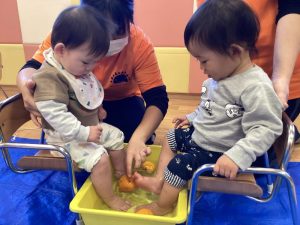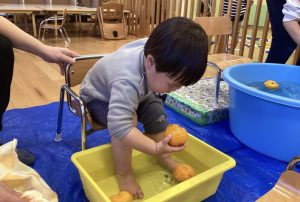 ぷかぷか浮いている柚子が気になって、思わず手に取るお友だちもいました✨