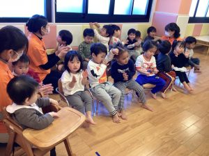 ピアノのリズムに合わせて手を叩きます🙌