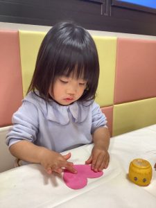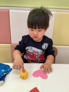 指先でのりをつけると、先ほどのハートにぬりぬり…🎶