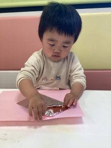 のりを指先で伸ばそうと奮闘する姿もありましたよ😊