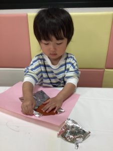 アルミホイルのやぶり方にも個性がでますね🌈