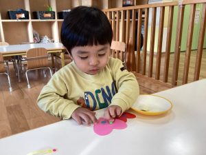 もも組さんは冬らしく手袋の製作をしました🧤