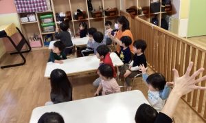 先日は2歳児クラスの保育参観がありました。保護者の方に来てもらって製作やおやつの姿を見てもらいました。いつもと違う環境で嬉しかったり少し恥ずかしかったり、少し保護者の方が離れるだけで悲しくなってしまったりと色々な姿を見せてくれました。