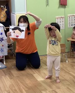 『stand up,sit down』に合わせて体を動かしました🤸♀️