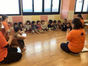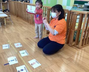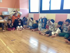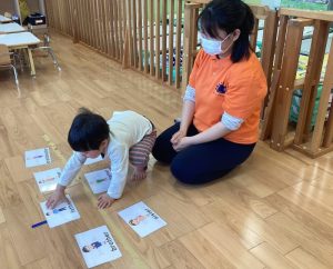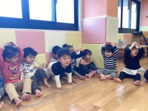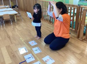 まず保育士と一緒に繰り返し発音した後に、ゲームをしました🎶