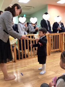 りんご組さんから代表して1名が卒園記念品を受けとりました🎁