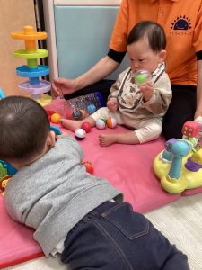 時間とともに少しずつ落ち着き、おもちゃに手を伸ばす姿もありました😊