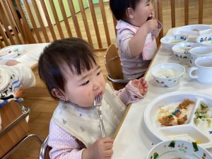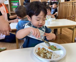 みんな大好きカレーで新入園児さんもスプーンが進みます😊