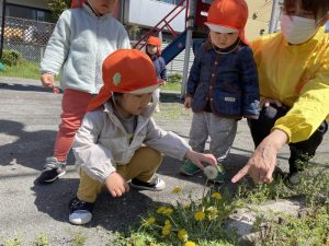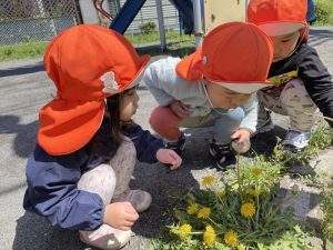 タンポポがたくさん咲いているのを発見した子どもたち🌼