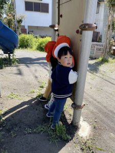背中を向けていますが、見つける保育士には丸見えでした😆