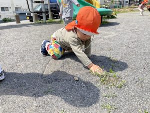 いちご組のお友だちは、手のひらで地面にお絵描きをしていました🙌