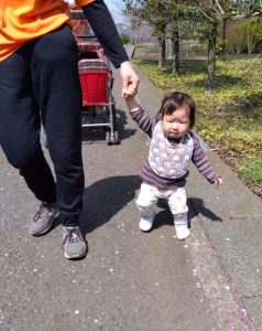 保育士の手を引いて、元気に歩くお友だち🙌