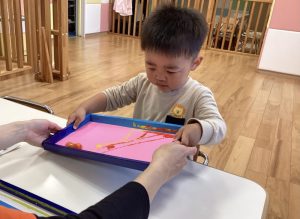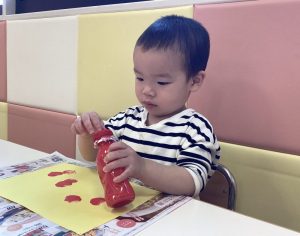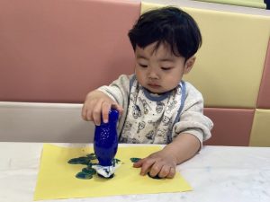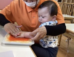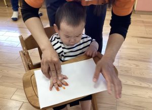 手に絵の具がつくと“なんだろう❓”と不思議そうなお友だち☺️