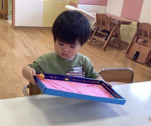 「きいろ」「あか」と色の名前を確かめながら転がすお友だち😊