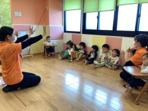 毎月違うテーマの中で歌をうたったり、体を動かしながら楽しく英語を学んでいます😊