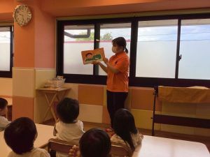 絵本が始まるとお風呂やタオルに顔がついていたので不思議そうに見ているお友だちや知っているものが出て来て嬉しそうなお友だち、びっくりするお友だちなど反応がさまざまでした😳