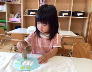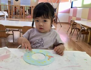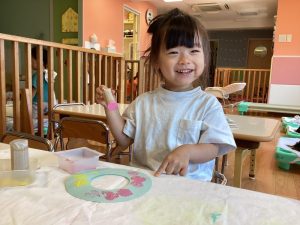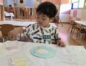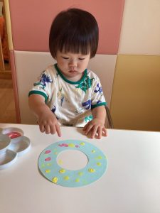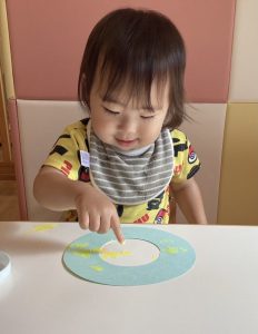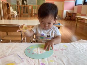 もも組さんといちご組さんはフィンガーペイントで模様をつけました😄