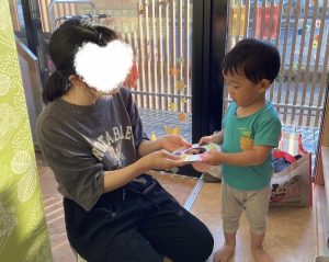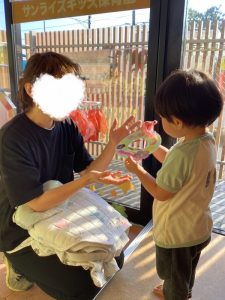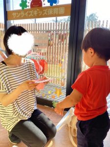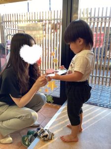 「はいどうぞ❗️」「ありがとう」と言って渡せるお友だちの姿もあり