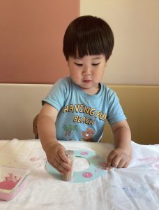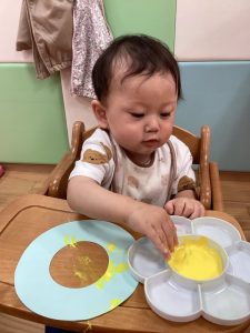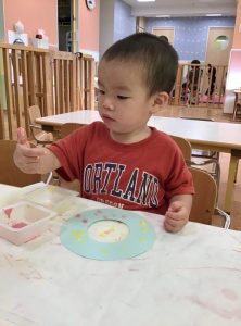 自分から絵の具に手を伸ばすお友だち👐