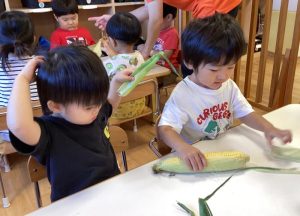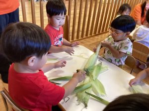 それでは、とうもろこし皮むきスタート🙌
