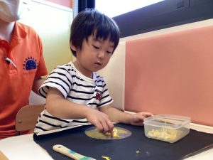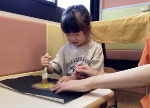 りんご組さんは台紙にのりをハケで付けていきました🖌