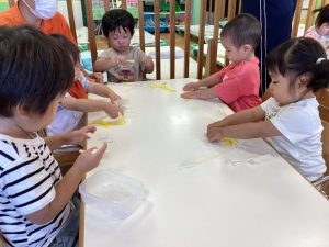 指先を使ってもも組さんも引っ張りながらちぎることができました❗️