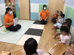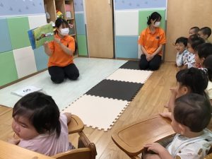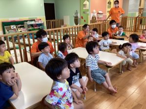 静かに保育士のお話しに耳を傾けていますね✨