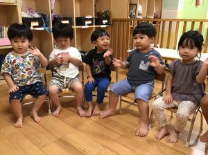 「トントンひげじいさん」の手遊びを保育士と一緒にやりました🙌