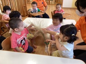 本物のススキもみんなで触ってみました🌾