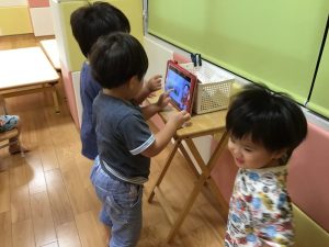 りんご組さんは帰りの会の前に『えいごであそぼう』をしました🔠