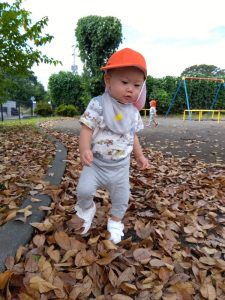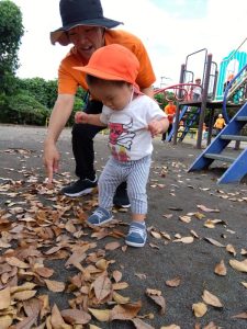 落ち葉を1枚ずつ拾ったり、両手に持ってお空に舞いあげたり…✨