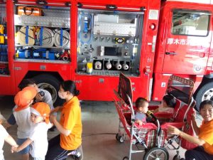依知消防署の前で消防車をながめていると、隊員の方が対応してくださり