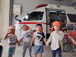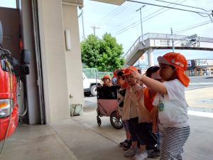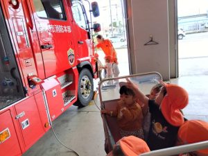 「あれはホースかな」「はしごかな」とお話するお友だちもいました🎶