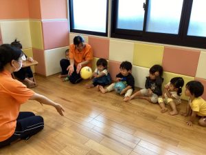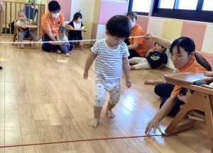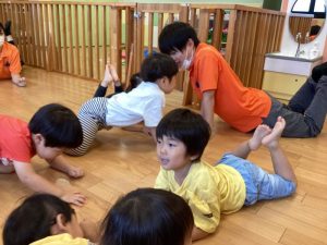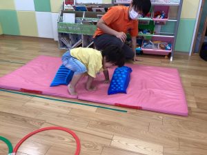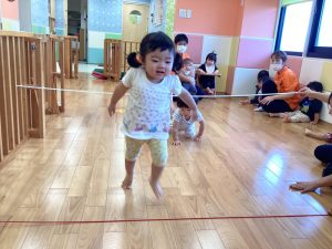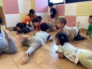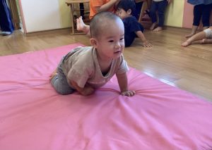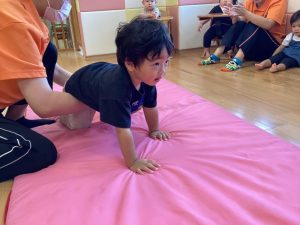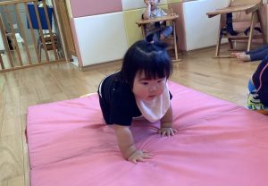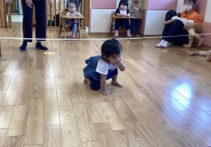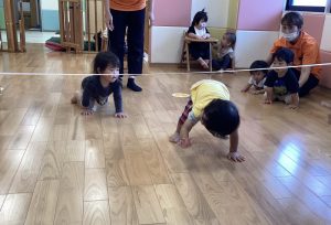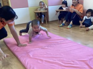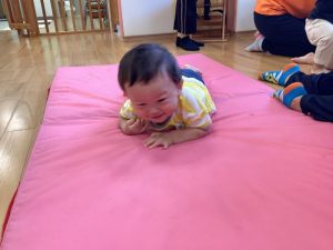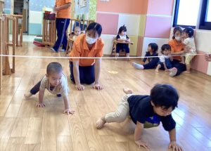 もも組さんはハイハイ、いちご組さんはクマ歩きに挑戦しました🐻