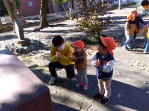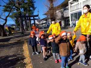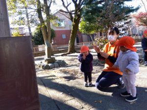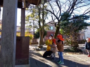 神社には神さまがいるんだよ、と神社についてから保育士がお話しをすると