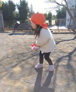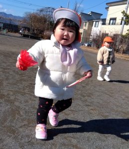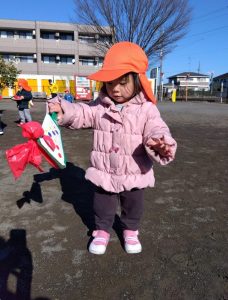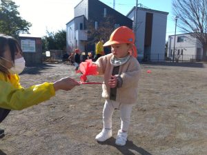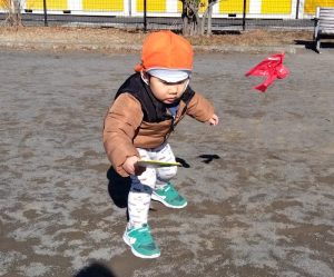 羽子板や羽をもちながら、元気に歩き回るもも組さん☀️