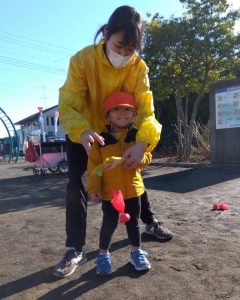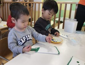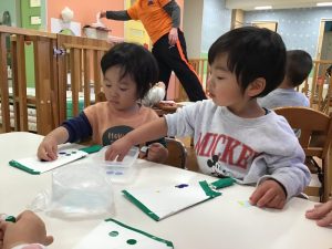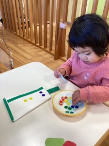 他のお友だちも保育士に手を添えられながらやってみました🌟