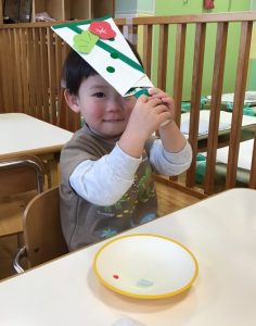 保育士の真似をして手を合わせます🙏