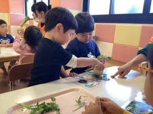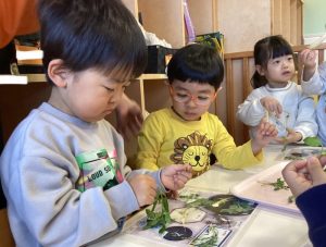 りんご組さんは写真を見ながら、七草を種類ごとに分けてみました🌼