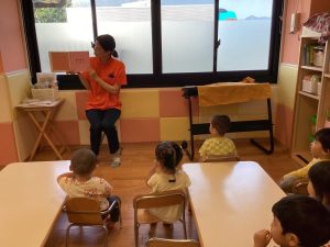 穴が空いている絵本だったので気付いたらお友達は指をさしたり「あいてる」と言ったりと普段との違いをすぐに感じ取っていました😳