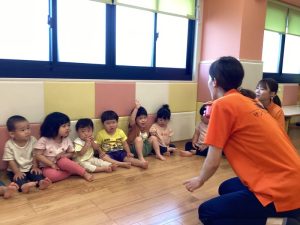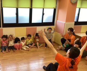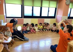 保育者と一緒に体を動かしながら、英語の音楽をうたいます🎵