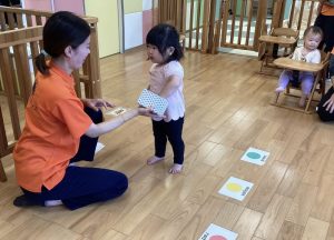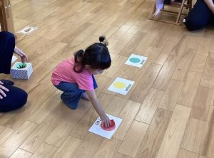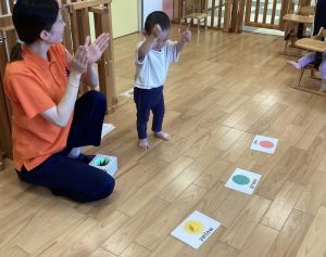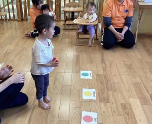 2歳児さんを中心に「red!」「blue!」と少しずつ言えるようになってきました😊