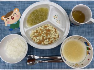 粥 味噌汁 マーボ豆腐風 キャベツの煮びたし