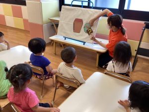 お楽しみの時間では、【食いしんぼうおばけ】のパネルシアターを見ました👻🍭