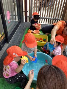 猛暑が続き、戸外に出られない日もありましたが久しぶりに水遊びができました🙌