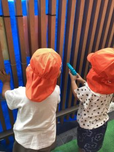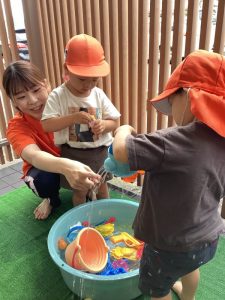 水遊びを重ねているうちに、水鉄砲の使い方にも慣れていた子どもたち🍀