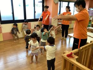 ここからは0・1歳児さんと、2歳児さんとで分かれて体操をしました🐥