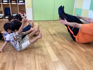 2歳児りんご組さんは、準備体操のあとに