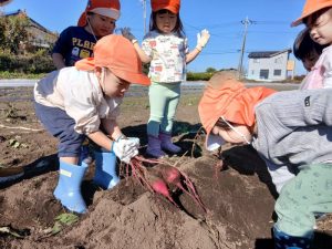 もも組さんも挑戦し、大きなサツマイモがとれました💓
